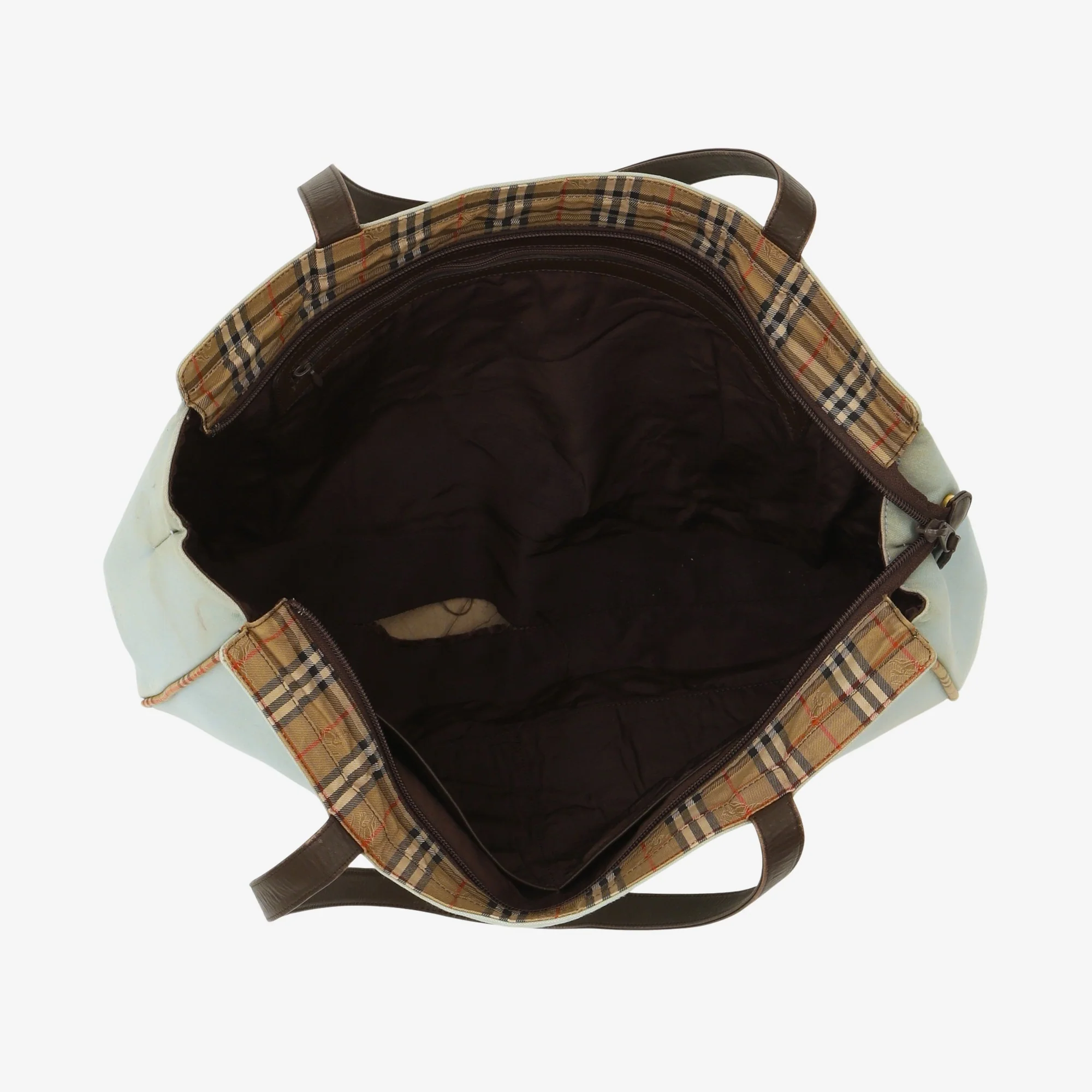 Vintage Canvas Shoulder Bag by Burberry. Stains on front and back and tear in lining , as pictured.